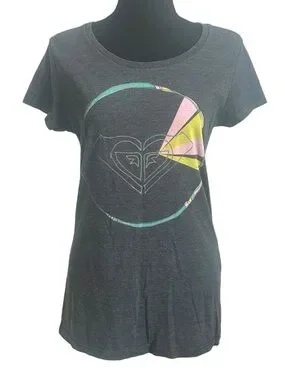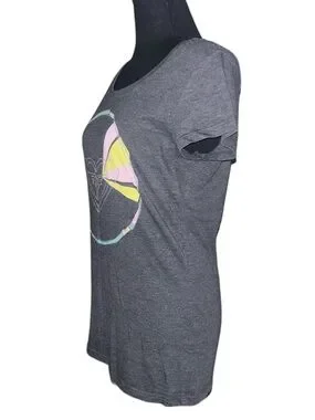 Roxy Grey Graphic’s Tee’s — Size Large Good Pre-Own Condition 🩷💛🩵 50% Cotton 50% Polyester