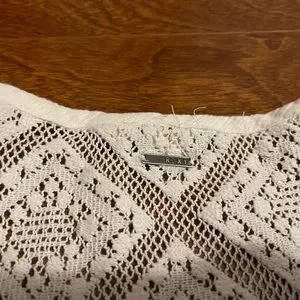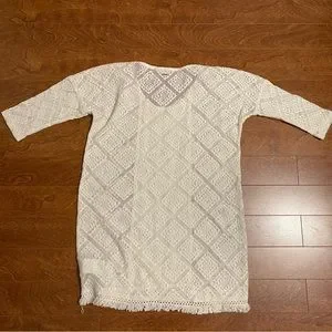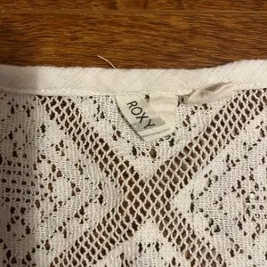 Cute with jeans, cute as a beach cover up, cute as a dress Lace Roxy top with fringed bottom and 3/4 sleeves