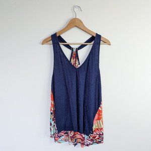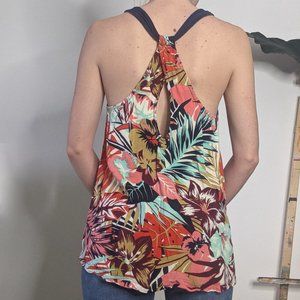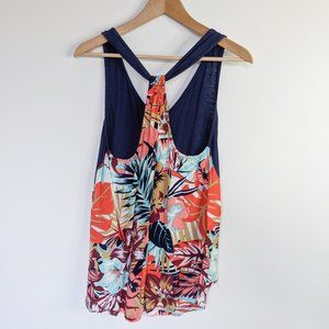 Navy blue tank top from Roxy with a tropical detail on the back. Cool racerback cut out design. Only worn a few times, great condition. Size medium.