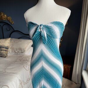Roxy Turquoise and White Striped Maxi Tube Dress