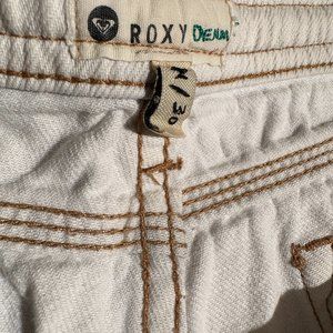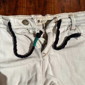 These are a cream/white colour and have a blue tie that actually acts as a hidden drawstring all the way around these shorts. These have only been worn a couple of times and are in great condition - but were just a bit too small for me. I would definitely consider these a short short - perfect for the beach or surfing days - it is Roxy afterall!