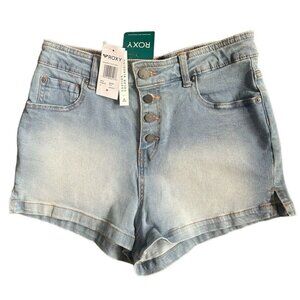 Roxy High-Rise Stretch Button Fly Light Denim Shorts Size 28