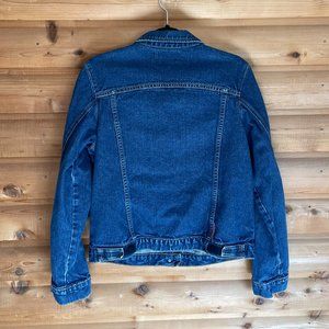 Great used condition. Very cool details on this jacket including custom buttons, yellow-gold stitching and velcro for tapering. A real gem to complete anybody's Canadian Tuxedo!