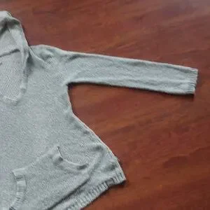 Cozy knit hooded pullover sweater with pouch