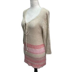 Roxy💜cotton Blend Short Sleeve Tie Front Lightweight Sweater Size M