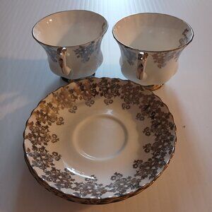 Royal Albert 25th Anniversary Silver Filigree Tea Cup & Saucer Set of 2