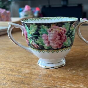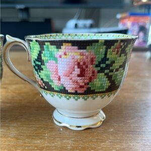 Royal Albert Crown China Needlepoint Rose Teacups - Set of 2