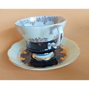 Teacup and saucer in great vintage condition with no chips, cracks or crazing. Stands 3" top of handle with a 3 5/8" opening. Saucer 5 1/2"
