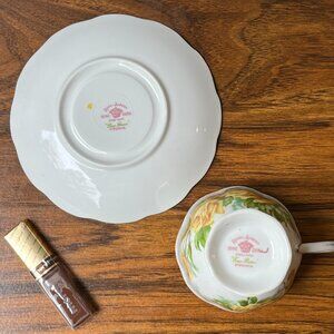 Dimensions 🌹 Mug height is about 2-3/4 in (6.8 cm), diameter is 3 in (8 cm). Maximum capacity is 6 oz (200 ml). Saucer diameter is 5-1/2 in (14 cm).