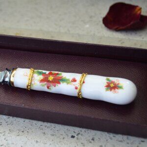 Add a festive flourish to your holiday table with this vintage Royal Albert Poinsettia jam spoon, new in its original box and brimming with timeless charm.