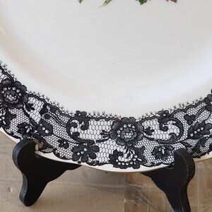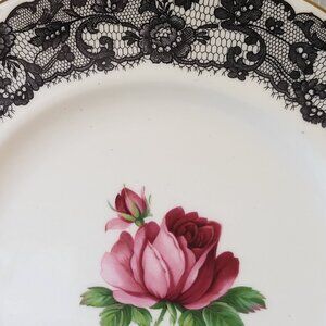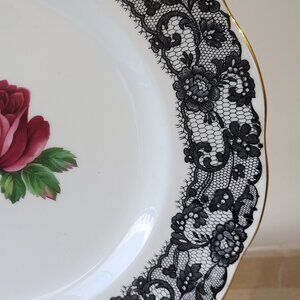 The Royal Albert Senorita Pattern 10 1/4" Dinner Plate is a rare vintage piece from the 1950s, featuring a classic black ceramic design. Made in England by Royal Albert, this original mid 20th-century plate is a collectible item that adds a touch of elegance to any table setting. With hand wash only care instructions, this dinner plate is a unique addition to any vintage kitchen or fine dining collection.
