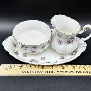 Royal Albert Sweet Violet Small Creamer Sugar Bowl Tray Set Bone China England