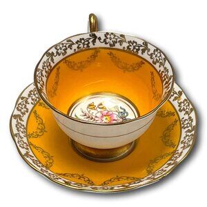 Royal Albert Teacup Saucer Porcelain Fine Bone China Yellow UK 1950s