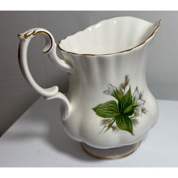 This exquisite Royal Albert set, featuring a graceful creamer and sugar bowl adorned with Trillium floral patterns, exemplifies elegance and charm. Crafted with fine bone china, it offers a sophisticated touch to any dining setting. Ideal for collectors or those seeking to enhance their tableware collection.