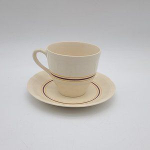 Made sometime between 1937 and 1978 by Alfred Clough Ltd. in their Royal Art line. They are decorated with 2 yellow bands and a larger maroon band. The cup is 2 7/8" tall with a mouth 3 1/4" across.