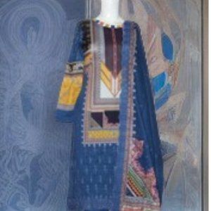 Royal Blue Block Print 3-Pcs Lawn Suit