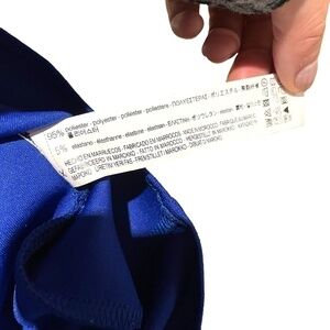 Really stunning short royal blue dress, make a statement! Smocked elastic sleeves and ruffle around neck, can be worn off shoulder.