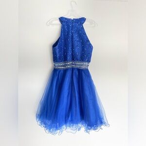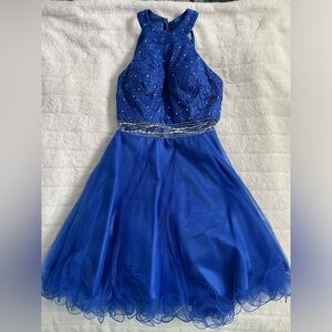 Stunning blue halter dress with a flared skirt. Perfect for special occasions. In perfect condition. Message me if you’re interested!