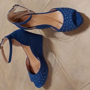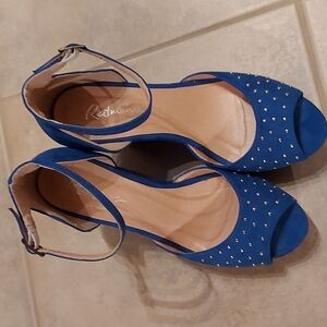 Royal Blue Suede Ankle Strap Platform Wedges with Silver Studs