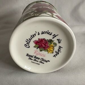 Royal Bone Chine ”Roses” mug, measures 4” high x 4” long, holds 10 oz.