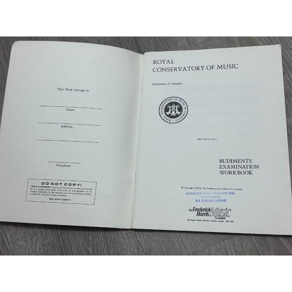 Royal Conservatory of Music Toronto University Rudiments Examination Workbook Music Sheet