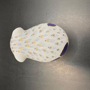 It is in the form of a sweet little Dormouse sitting up and holding a large seed in its little paws. It has baby blue and gold fur, blue eyes and is decorated with berries, leaves and hops and has a gold stopper, but no box.