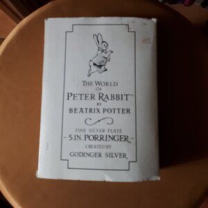In Original Box with Sleeve. 1992 Royal Doulton 5 in Porringer with Jemima Puddle Duck Spoon. The world of Peter Rabbit by Beatrix Potter Fine Silver Plate created by Godinger Silver for Royal Doulton.