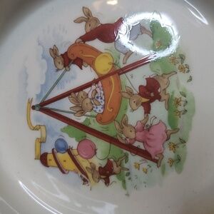Royal Doulton Bunnykins "Swinging Boats" 6-3/8" Round Baby Plate (Bowl)