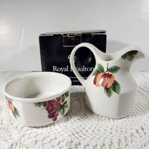 Royal Doulton Creamer & Open Sugar Bowl Everyday Vintage Grape England 1994