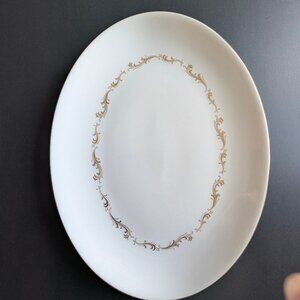 Beautiful Royal Doulton French Provincial platter with inner gold scrolls and trim, a truly regal pattern. This classic, elegant pattern was produced by Royal Doulton from 1957 through 1976 and is now discontinued. The platter is in excellent condition, it has no chips, cracks, just a few barely noticeable knife scratches on the bottom. The gold pattern and trim are in perfect condition. Plate stand not included.