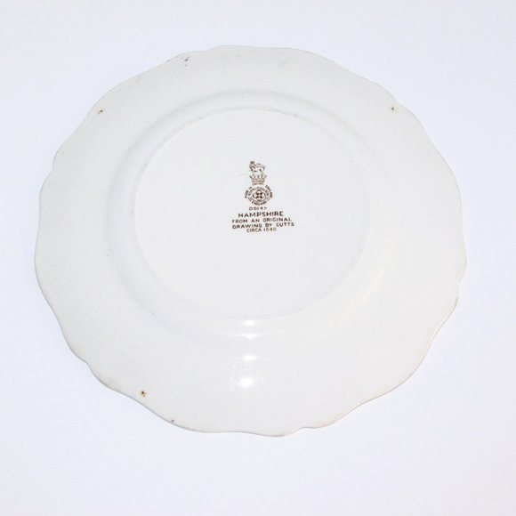 Two salad plates as pictured. This pattern was produced in England by Royal Doulton from 1940 until 1961. Backstamp reads - "From an original drawing by Cutts, Circa 1840."