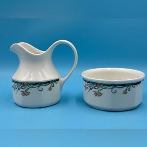 Royal Doulton ‘Juno’. 1988. Fine China. Sugar Bowl and Creamer Jug. Made in England. Dishwasher, Microwave, Freezer, and Oven Safe.