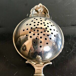 Royal Doulton Silver Metal & Porcelain Plate Over the Cup Tea Strainer Roses