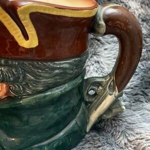 This is in very good vintage condition. No chips or cracks a bit of crazing on bottom due to age. But overall great condition Add a touch of adventure to your home with this handcrafted pirate head mug. Featuring a blend of brown, cream, and green colors, this unique piece is perfect for art enthusiasts.