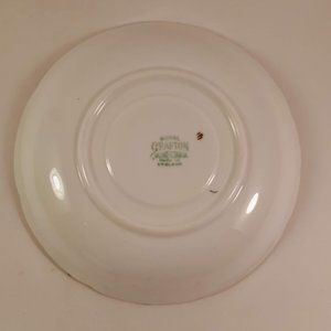 Royal Grafton Beautiful teacup is in the 7025 pattern and it has gold trim and it has a pastel blue ground on the inside of the cup and on the saucer. The outside of the teacup has a gold band with hand painted roses design.