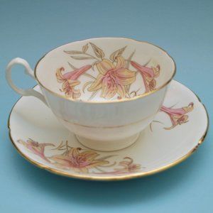 Royal Grafton Bone China Teacup & Saucer England Pink Lilly, Vintage Tea Cup
