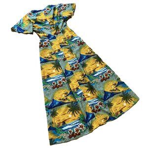 Royal Hawaiian Maxi Dress Empire Waist Hawaii Sunset Print Vintage 70s