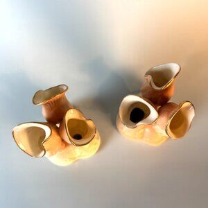 Exquisite pair of vintage porcelain sculptures, crafted in England by Royal Ivory Porcelain. These unique pieces feature a flowing, tubular design reminiscent of ocean sponges or coral formations, capturing the essence of marine life in soft, pearlescent tones.