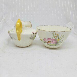 Royal Paragon By Appointment Sugar and Creamer Set-Lily Pads-Pink-Yellow-Weave