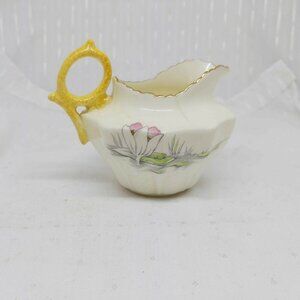 This vintage sugar and creamer set, made by Royal Paragon, features a charming design with a lily pad motif.