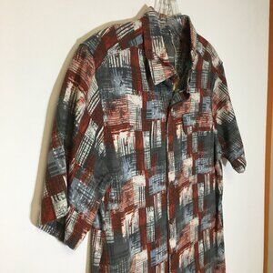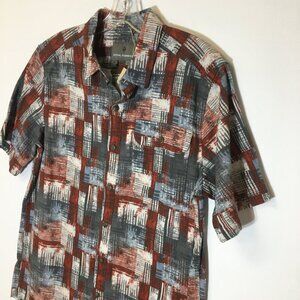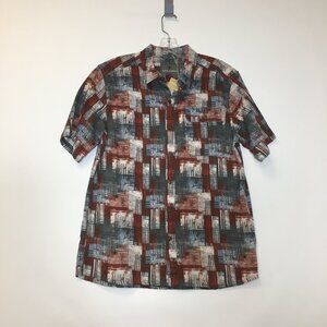 Crafted for comfort and style, the Royal Robbins men's cool mesh eco print short sleeve button-up shirt is a versatile addition to any wardrobe. The size medium shirt comes in a striking red/white/grey color palette, making it an easy match for both casual and semi-formal occasions. Its regular fit ensures a relaxed yet tailored look, perfect for the modern man. The shirt is designed with attention to detail, featuring a crisp button-up front and a classic collared neckline. Ideal for a day out or a relaxed evening event, this shirt promises to be a go-to in your clothing collection.