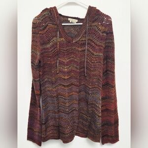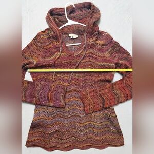 Royal Robbins Multi- Coloured Purple and Brown Crochet Knit Sz L Hooded Sweater
