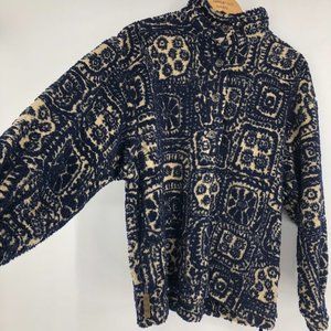 Royal Robbins blue & cream abstract pattern fleece 1/3 button pullover sweater M