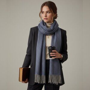 Wrap yourself in timeless luxury with this Royal Rossi scarf, made from 100% pure cashmere from Inner Mongolia/China. This piece is the epitome of quiet luxury, featuring a classic blue and white herringbone pattern and a sophisticated fringe. It’s incredibly soft, lightweight, and ultra-warm, making it a versatile unisex accessory for both men and women. Perfect for adding a touch of elegance to any outfit and an ideal gift for the holidays.