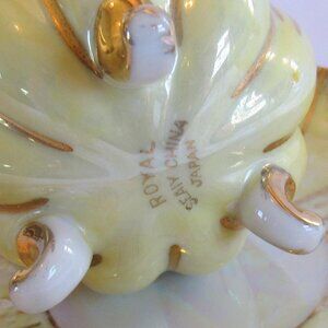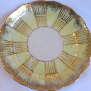 How adorable. Proudly featuring a wonderful soft, buttery yellow with and abundance of gold gilt designs.