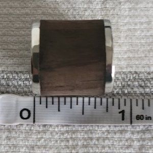 Royal Selangor, NIB, Barrel necklace, with black cord. The barrel has a centre woodgrain finish per pics. The cord does not offer a closure attachment so it has to be tied to your liking. Comes with blue velour drawstring dustbag as well as the Royal Selangor box. New, never used.