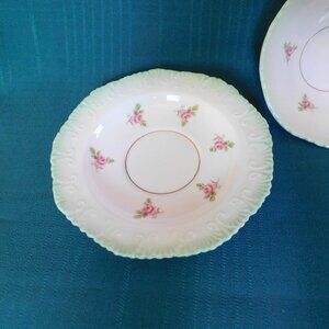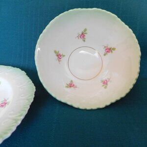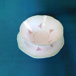 Royal Stafford small pink roses embossed green band bowl with underplate NMC