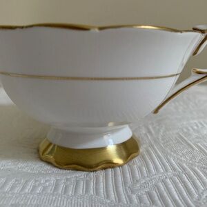 It is in perfect condition but there is one tiny white spot on the saucer.