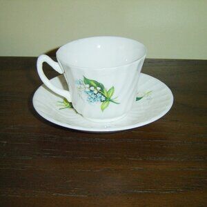 Royal Sutherland blue white bouquet swirl cup and saucer VGU