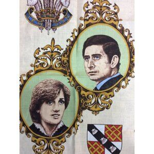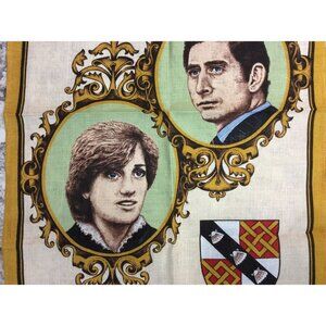 Hard to find tea towel commemorating the official engagement of Prince Charles and Lady Diana Spencer on February 24, 1981.